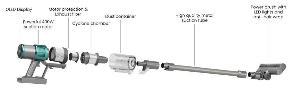 - SEBO Power Brush with LED headlight and anti-hair wrap technology